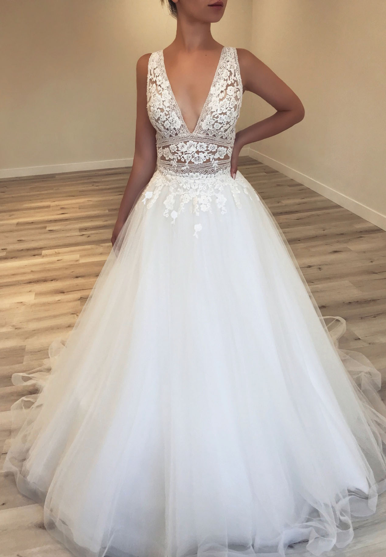 Tijdloze en elegante keuze, perfect voor de traditionele bruid die een klassieke uitstraling wil op haar prachtige dag.